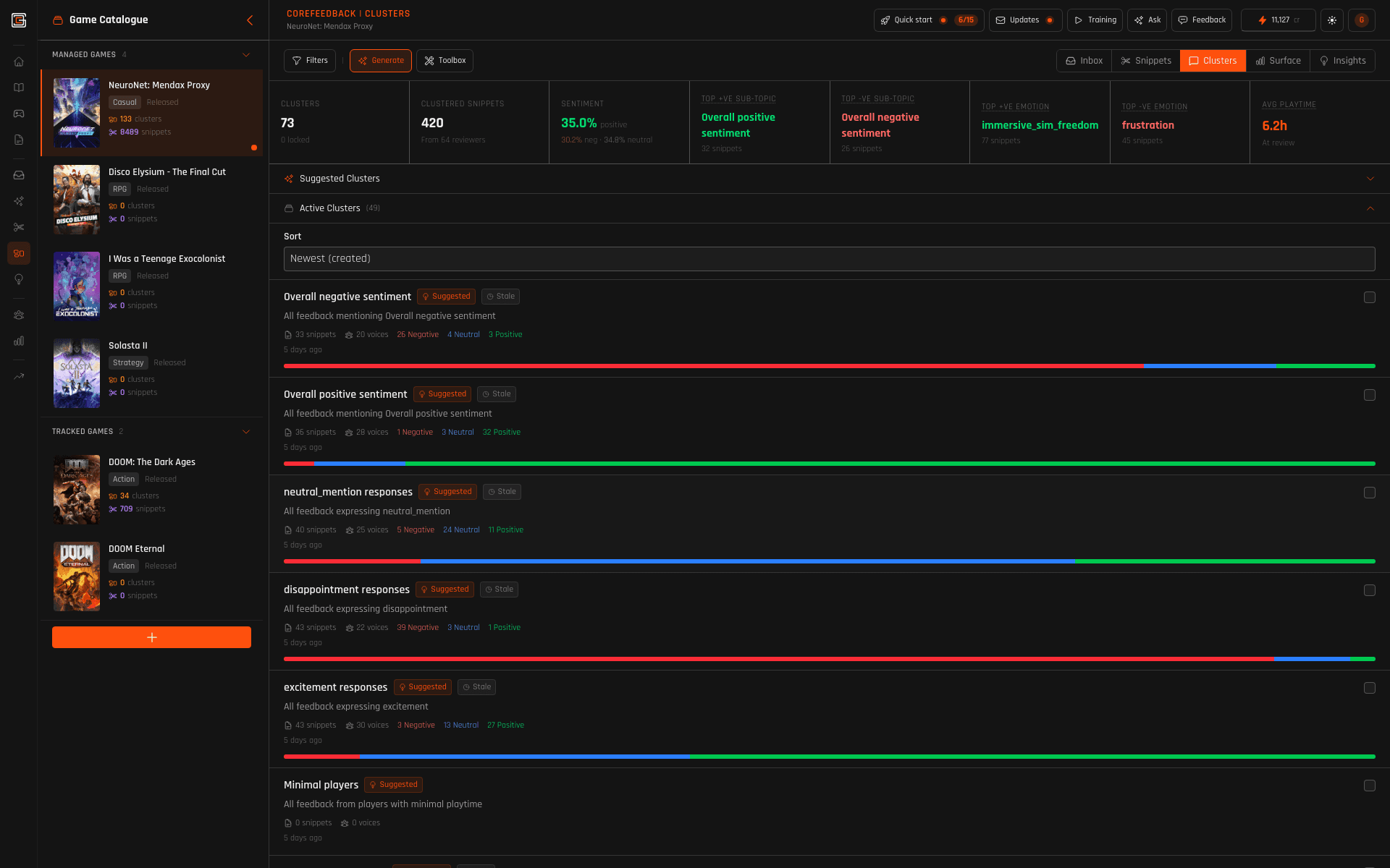Clusters — themes you can inspect
